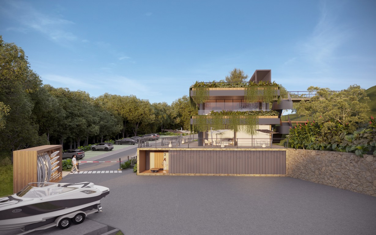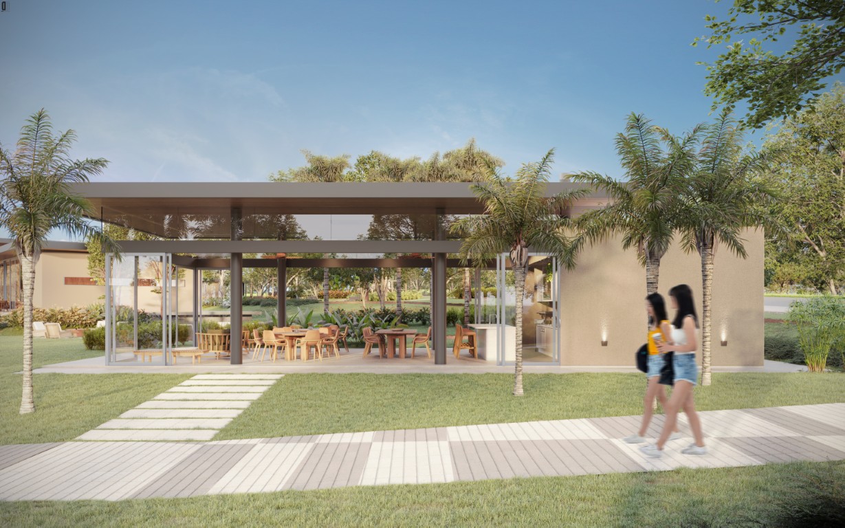 com o lago, com arquitetura, paisagem e lazer integrados